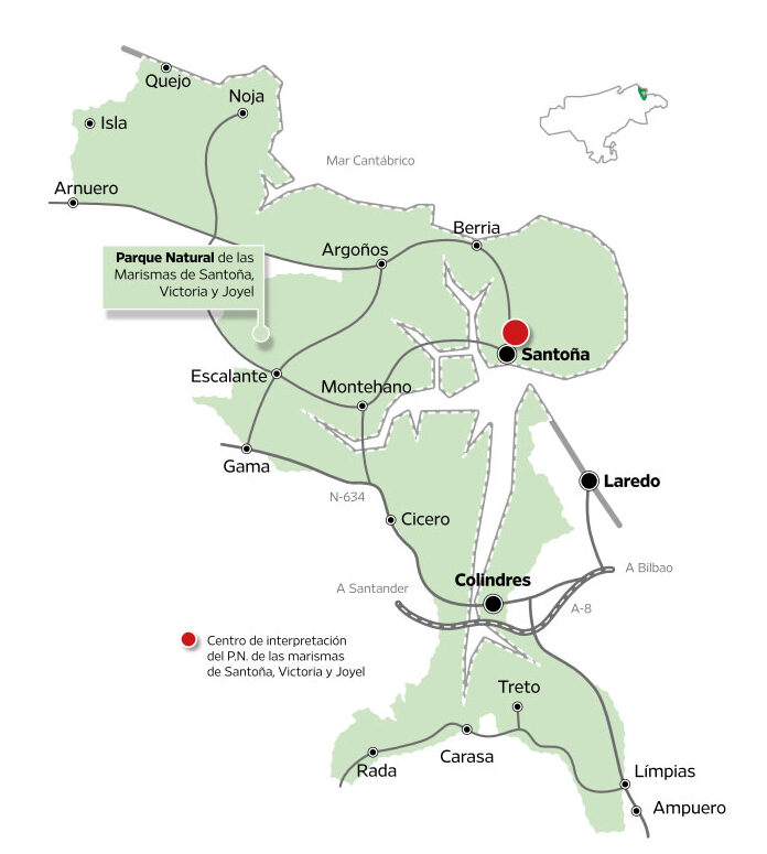 Mapa del Parque Natural de las Marismas de Santoña, Victoria y Joyel