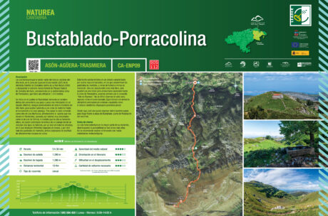 Se inicia en el pueblo de Bustablado tomando un sendero que sale detrás del cementerio que poco a poco nos introducirá en un hayedo atlántico, bosque predominante en toda la montaña del Alto Asón, para acabar saliendo a una zona de matorral que nos acompañará al monumento de la vaca pasiega. Tras pasar la zona conocida como Los Machucos, afrontaremos la subida que nos llevará al Porracolina, pasando por laderas muy empinadas como la Len de Hormías. A medida que la ruta va tomando altura, se puede contemplar la belleza de un paisaje donde se mezclan dos tipos de hábitats, por un lado el matorral atlántico, en el que destacan diferentes especies de brezos, y por otro lado los pastizales de montaña, ambos salpicados de multitud de afloramientos rocosos de caliza.