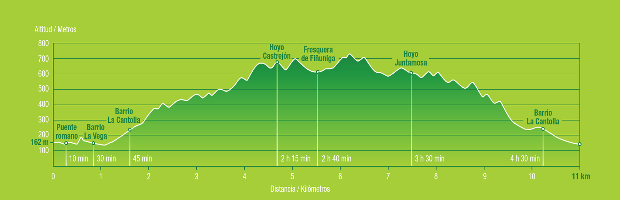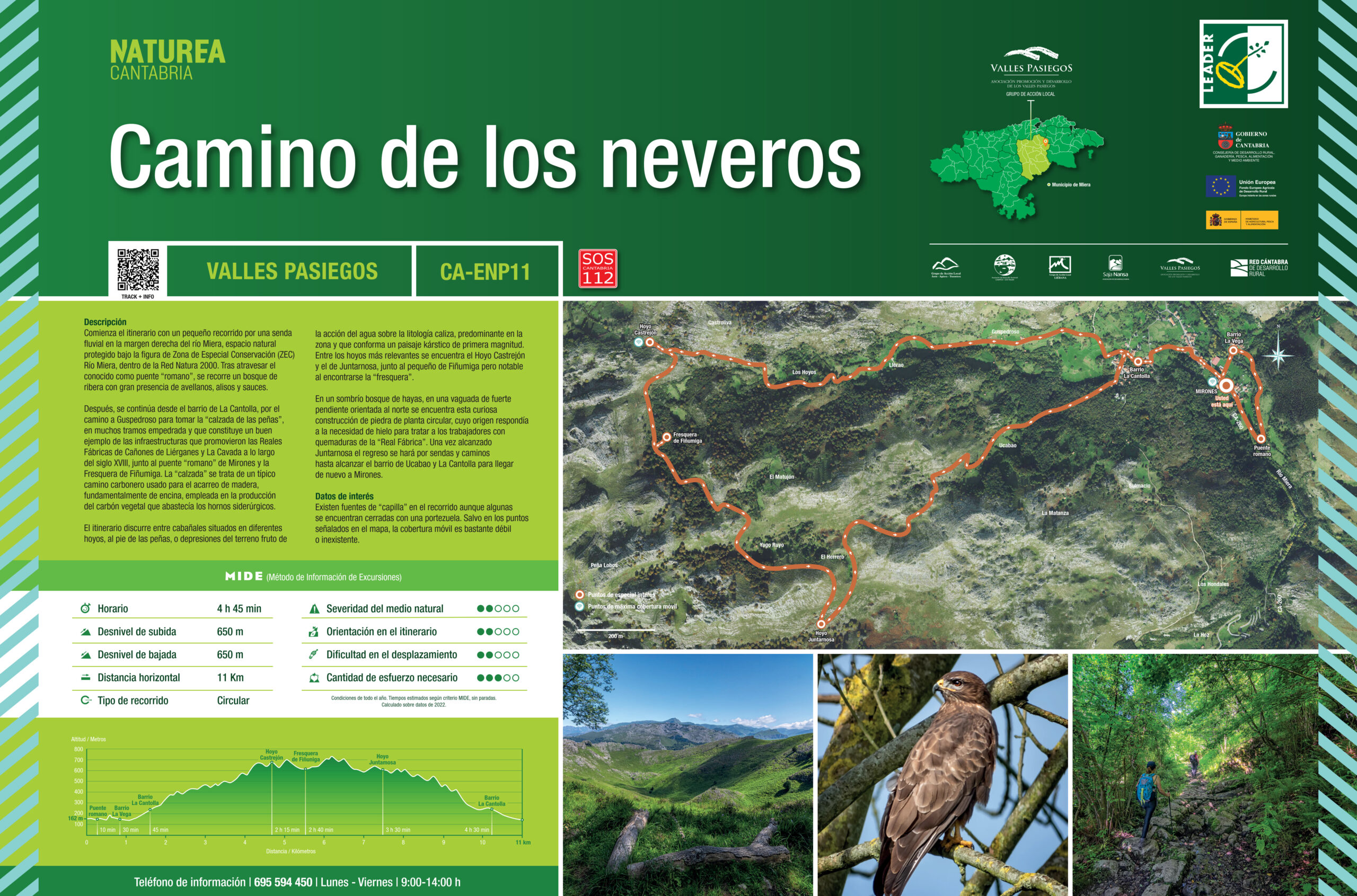 El itinerario discurre entre cabañales situados en diferentes hoyos, al pie de las peñas, o depresiones del terreno fruto de la acción del agua sobre la litología caliza, predominante en la zona y que conforma un paisaje kárstico de primera magnitud. Entre los hoyos más relevantes se encuentra el Hoyo Castrejón y el de Juntarnosa, junto al pequeño de Fiñumiga pero notable al encontrarse la “fresquera”. En un sombrío bosque de hayas, en una vaguada de fuerte pendiente orientada al norte se encuentra esta curiosa construcción de piedra de planta circular, cuyo origen respondía a la necesidad de hielo para tratar a los trabajadores con quemaduras de la “Real Fábrica”. Una vez alcanzado Juntarnosa el regreso se hará por sendas y caminos hasta alcanzar el barrio de Ucabao y La Cantolla para llegar de nuevo a Mirones.