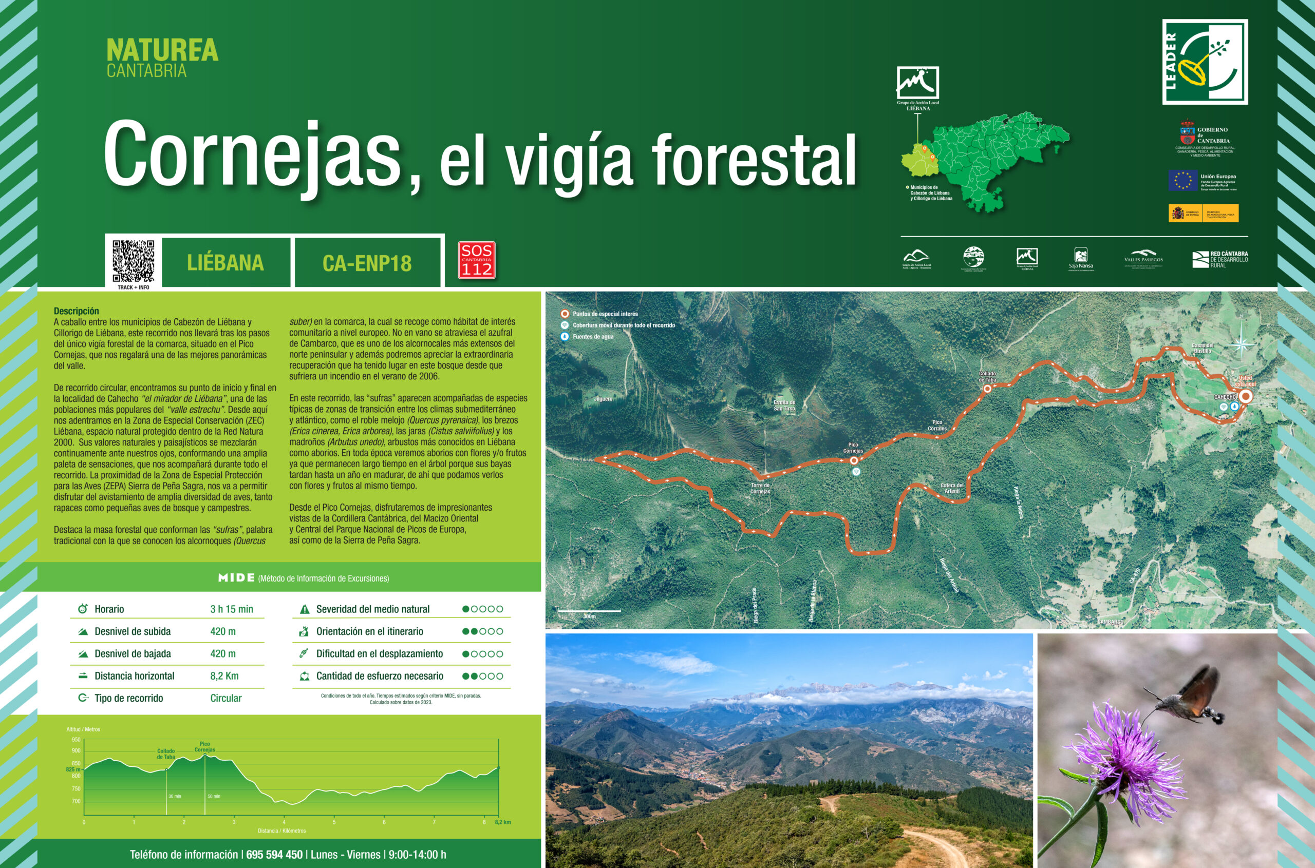 A caballo entre los municipios de Cabezón de Liébana y Cillorigo de Liébana, este recorrido nos llevará tras los pasos del único vigía forestal de la comarca, situado en el Pico Cornejas, que nos regalará una de las mejores panorámicas del valle.