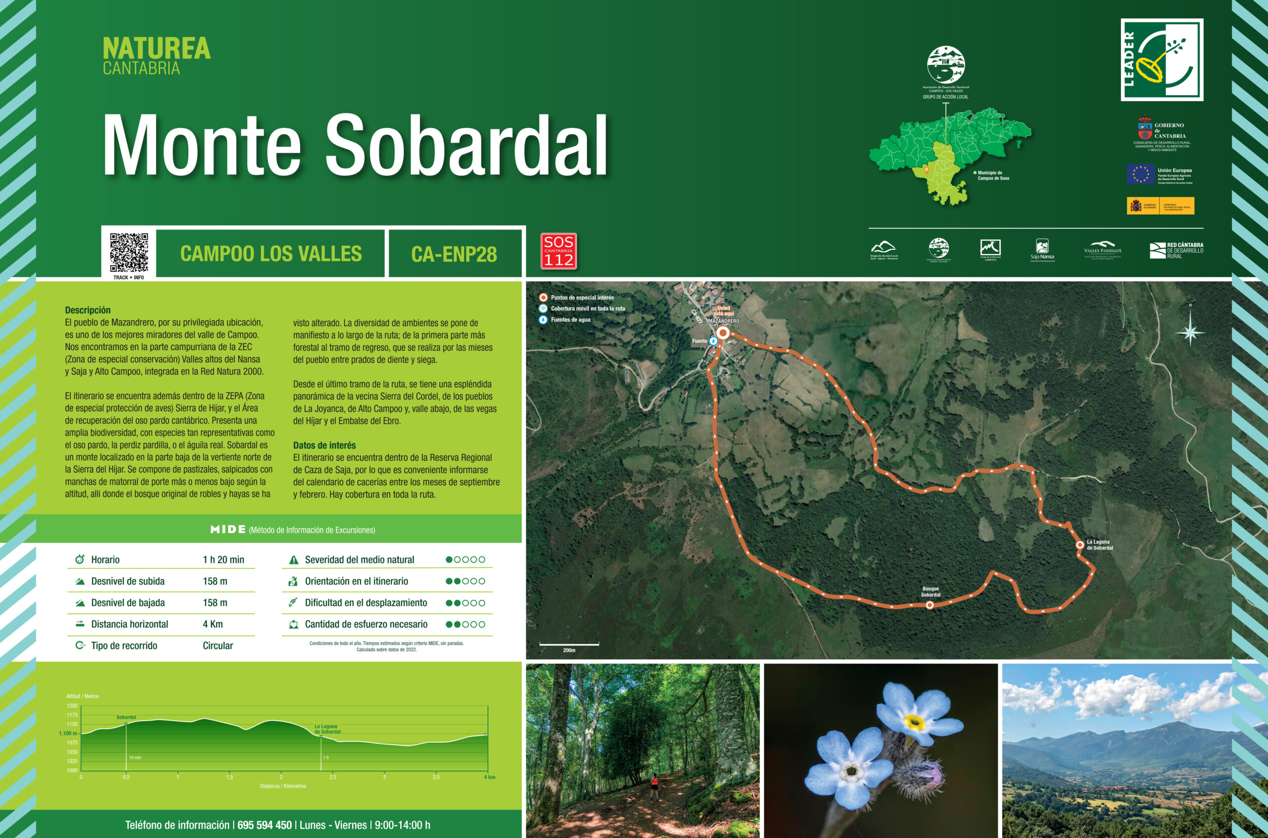 El itinerario se encuentra además dentro de la ZEPA (Zona de especial protección de aves) Sierra de Hijar, y el Área de recuperación del oso pardo cantábrico. Presenta una amplia biodiversidad, con especies tan representativas como el oso pardo, la perdiz pardilla, o el águila real. Sobardal es un monte localizado en la parte baja de la vertiente norte de la Sierra del Híjar. Se compone de pastizales, salpicados con manchas de matorral de porte más o menos bajo según la altitud, alli donde el bosque original de robles y hayas se ha visto alterado. La diversidad de ambientes se pone de manifiesto a lo largo de la ruta; de la primera parte más forestal al tramo de regreso, que se realiza por las mieses del pueblo entre prados de diente y siega.